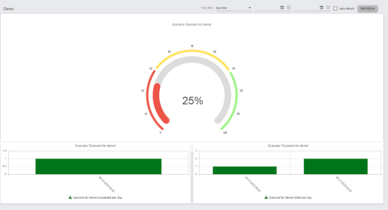 Status van een testrun, performance van een testcase of teststap over lange termijn zijn beschikbaar.