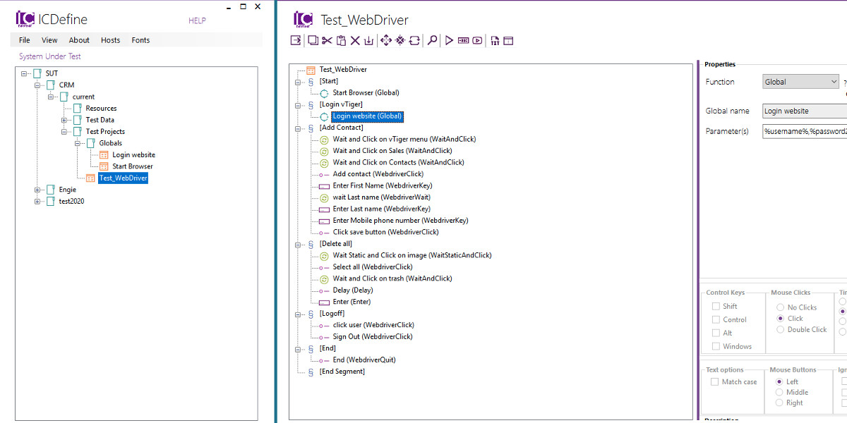 De Selenium Webdriver functies zijn toegevoegd aan de ICDefine testcase editor. Zodat de standaard functies en de Webdriver functies naast elkaar in één test case gebruikt kunnen worden.